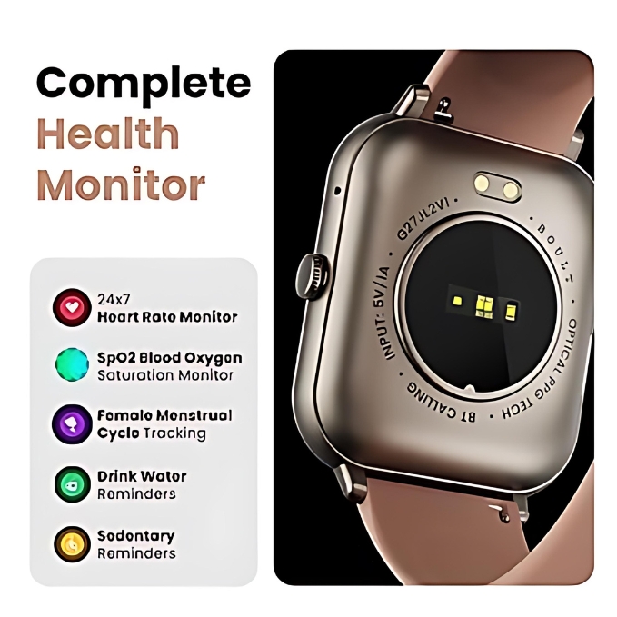 | Health Monitoring | 24/7 Heart-rate, SpOâ‚‚, sleep tracking, menstrual cycle, and stress reminders |